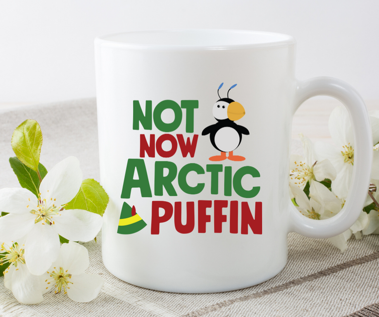 Arctic Puffin and Buddy the Elf 11 0z Mug, the perfect stocking stuffer for your family, friends, and yourself!