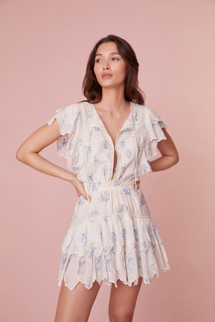 Our beloved Finny Dress returns in Apple Blossom print. She’s airy, dreamy, and easy to wear. This must-have mini begins with an open v-neck with elasticated flutter sleeves before falling...