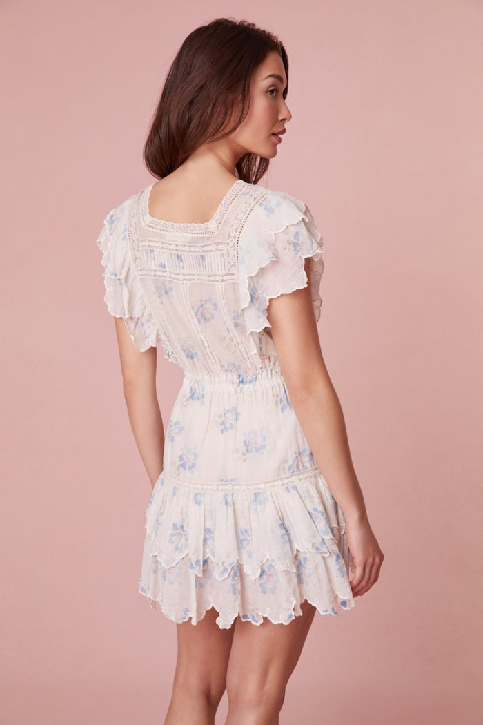 Introducing the Lilias Dress. This Victorian-inspired mini stuns with a cotton voile fabric. She features short sleeves, a square v-neckline, lace threaded through the waistline, and intricate vintage-inspired accents all...